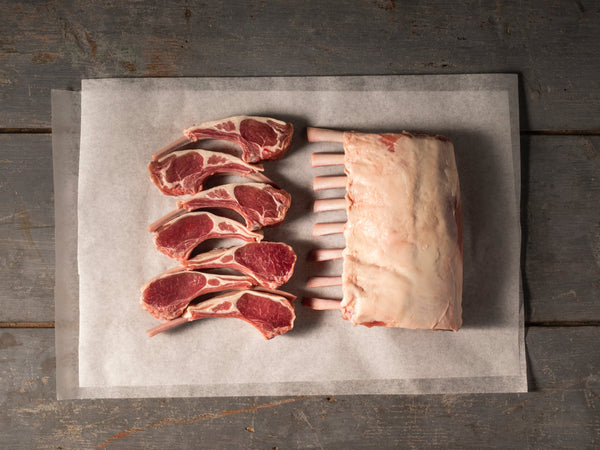 For fast cooking, remove any thick pieces of fat and slice in between the bones so you have small lamb cutlets. Place in a bowl and add finely chopped garlic, finely chopped ginger and a big splash of light soy sauce. Mix well and marinate for 10 minutes.